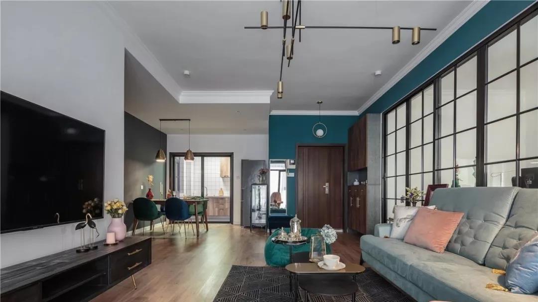 蒙自听蓝半山复古混搭风格装修案例110平米实景效果图
