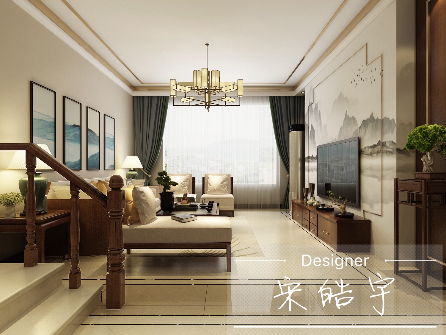 新乡装修效果图-忆通壹世界*新中式效果图_新乡创艺装饰
