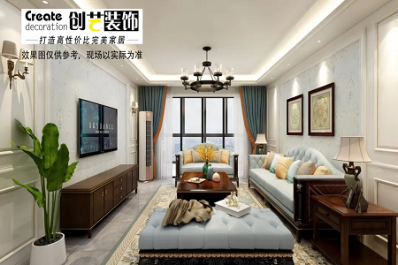 翡翠时光90平米设计案例-两居室户型案例分析-南宁创艺装饰