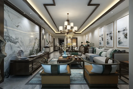 桂林国学府-国学府126平米装修效果图-新中式风格